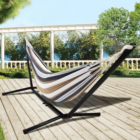 Amaca Doppia Con Struttura A 120kg – 200×120 Cm Supporto Da Esterno In Metallo