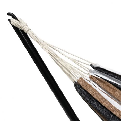 Amaca Con Supporto In Metallo E Tessuto A Righe Nere, Bianche E Cioccolato