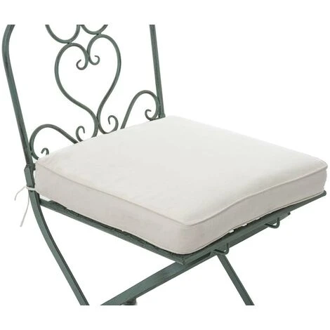 La fodera è 100% cotone e, grazie alla cerniera nascosta, può essere tolta e lavata. L’imbottitura è in materiale espanso (100% poliuretano). Ai lati si trovano due cordoncini per legare il cuscino alla sedia o alla panca.