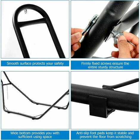 - ★Struttura più Stabile★ Grazie all’area di contatto più ampia e al robusto telaio in metallo, il supporto per amaca è più stabile. Quattro supporti metallici rafforzano la stabilità strutturale, per una capacità di carico fino a 200 kg. Inoltre, quattro piedini antiscivolo garantiscono un attrito sufficiente ed evitano di graffiare il pavimento.