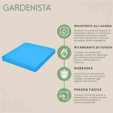 Materiale di qualità: questo cuscino da seduta Gardenista per mobili da esterno in rattan è realizzato con imbottitura in fibra di alta qualità per il massimo comfort e un morbido tessuto in poliestere resistente all’acqua per una maggiore durata. È progettato con caratteristiche resistenti alle intemperie per resistere agli elementi esterni, garantendo un uso duraturo e protezione dagli elementi.