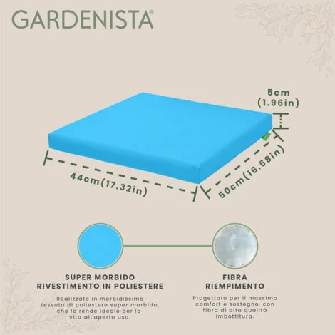 Dimensioni:i cuscini per sedie da giardino Gardenista presentano dimensioni di 50 cm di larghezza, 44 cm di profondità e 5 cm di spessore per una seduta confortevole. Ideale per sedie da giardino di dimensioni standard e offre un supporto morbido per lunghi momenti di relax all’aperto.