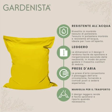 Materiale di qualità: il pouf da esterno rettangolare Gardenista è realizzato in tessuto di poliestere morbido e resistente, garantendo il massimo comfort e un uso duraturo. È riempito con perline in poliestere EPS di alta qualità, offrendo un’esperienza confortevole e di supporto. Il materiale è resistente alle intemperie e ai raggi UV, il che lo rende adatto per l’uso all’aperto e in grado di resistere a condizioni climatiche avverse.