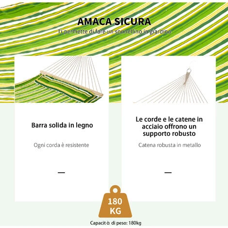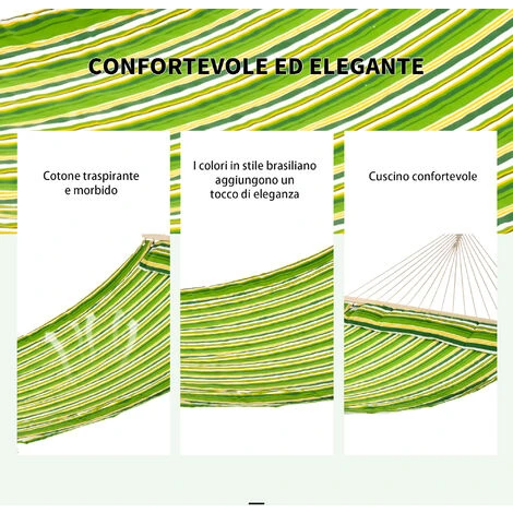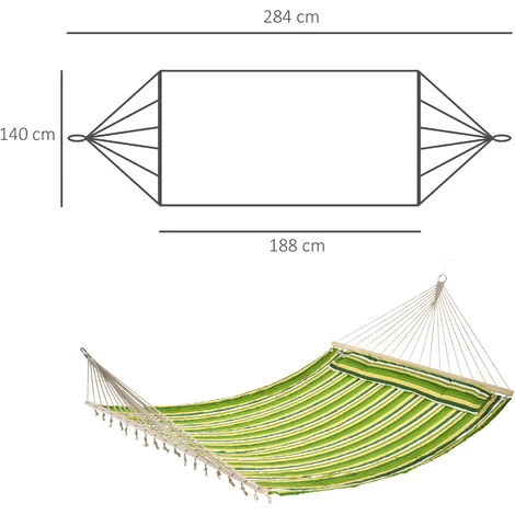 Questa amaca portatile sarà il tuo posto preferito per rilassarti o dormire. Si tratta di un ottimo complemento per il giardino di casa, il campeggio, l’area picnic o la spiaggia! L’amaca da giardino 2 posti è realizzata in cotone con colori brillanti, per portare allegria in ogni ambiente. Preparati ad allestire la tua personale oasi di relax in ogni spazio esterno!
