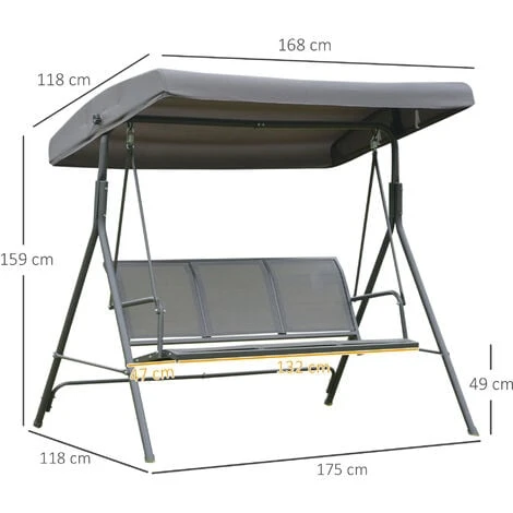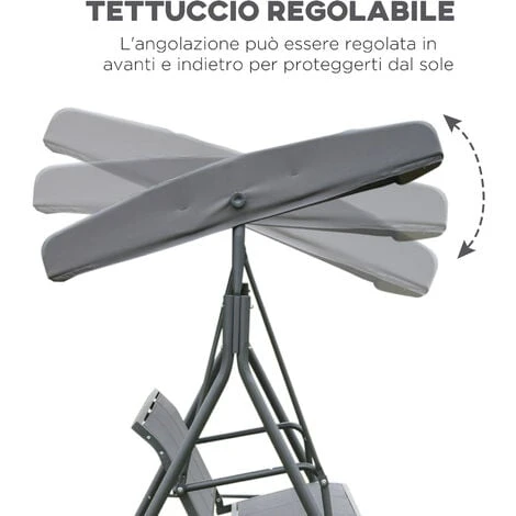 Goditi un piacevole momento di relax su questo dondolo da giardino Outsunny. Dal design elegante e semplice, offre tutto il necessario per una pausa rilassante nel tempo libero. Il tettuccio parasole regolabile consente di avere sempre un’ombra fresca e accogliente a ogni ora del giorno. Il sedile offre tanto spazio per tre persone e, grazie al telaio in tubi d’acciaio, resiste a un carico fino a 200kg.