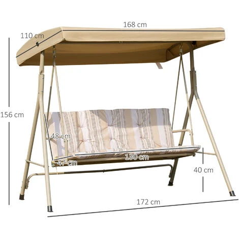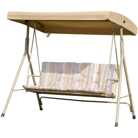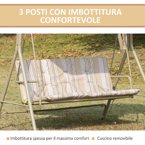 Goditi il bel tempo in compagnia su questo dondolo da giardino con tettuccio di Outsunny. Con telaio in robusto acciaio verniciato a polvere e tettuccio parasole in poliestere, il dondolo 3 posti è resistente alle intemperie. Il sedile con cuscini imbottiti offre una seduta confortevole e i braccioli su ogni lato assicurano un sostegno extra. Siediti e lasciati cullare per un relax totale.