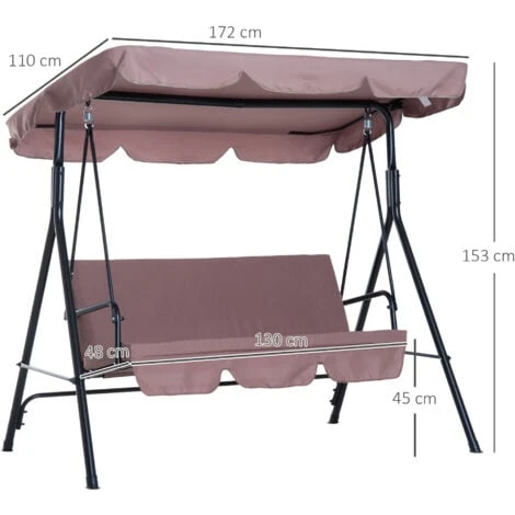 Dondolo da giardino dal design classico ed elegante, offre il massimo comfort durante le giornate estive. Dispone di una seduta ampia e comoda. Adatto per 2 o 3 persone. Ideale per il vostro giardino, terrazzo, patio ecc. Realizzato con materiali di elevata qualità e con una lavorazione di prima classe. Robusta struttura in acciaio verniciato a polvere, potrà essere utilizzato per lungo tempo senza rovinarsi. Il tettuccio parasole con angolo regolabile permette di ripararsi bene dal sole.