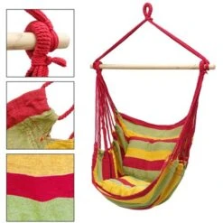 Amaca Poltrona Sedia Sospesa Giardino Campeggio Con 2 Cuscini Rosso/giallo/verde