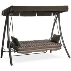 Dondolo Grande Giardino 3 Posti Reclinabile Letto Altalena Colore Moka Rigato
