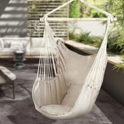 Poltrona Sospesa, Altalena Sedia Amaca, Capacita Di Peso 120 Kg, Per Interno/Esterno, Beige